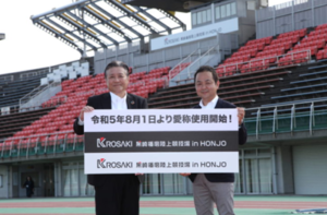 これに伴い、当該施設は令和5年8月1日から新名称(愛称)が、「黒崎播磨陸上競技場 in HONJO」となりました。